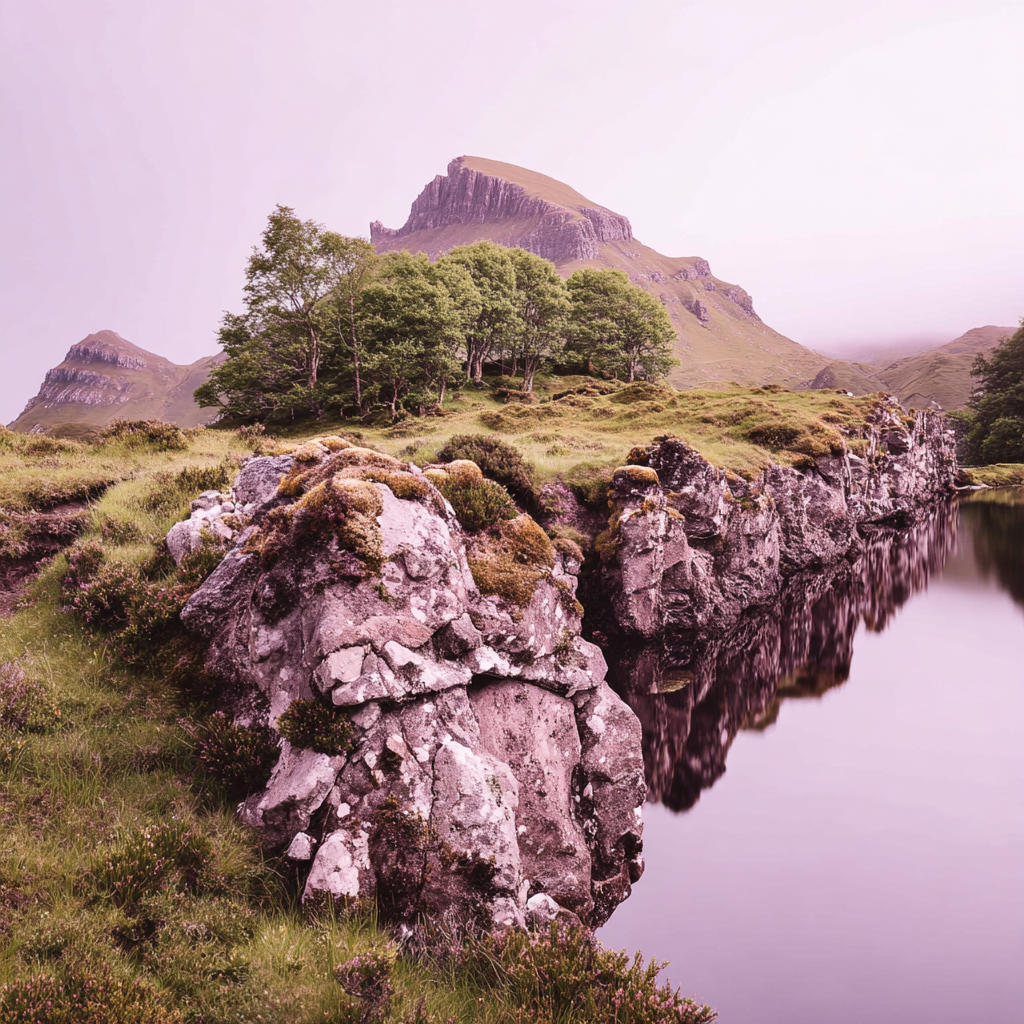 Download ImageImage Title: Rocky outcrop overlooking a still lake and distant mountainResolution: 1024 x 1024Close