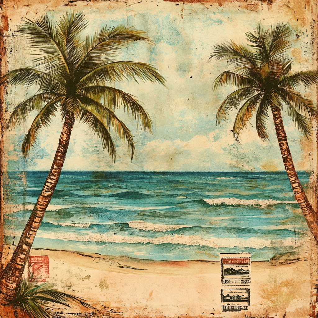 Download ImageImage Title: Tropical beach with palm trees and ocean waves vintage styleResolution: 1024 x 1024Close